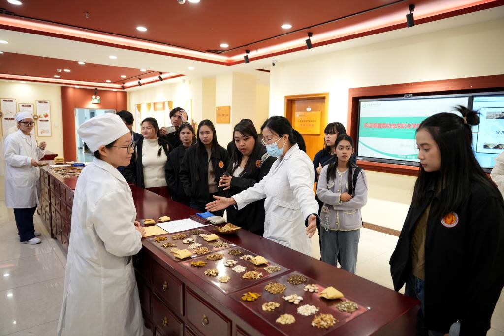 11月12日,泰国素叻他尼职业学院师生来世界杯官网进行研学交流访问,学院党委委员、副院长刘志伟参加欢迎仪式,中药系、产教融合中心负责人及教务部相关人员陪同参观。泰国师生实地参观了中药标本厅、中药调剂技艺传承基地、百草大药房、药・茶技能技艺传承与创新实训基地以及...2024-11-13 -