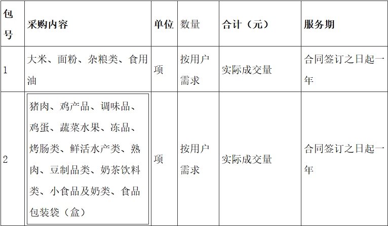 2、主要成交标的的名称、数量、服务期等: