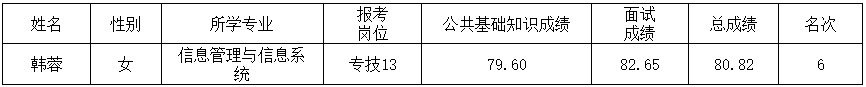 因报考专技13岗位的刘宪梓(综合成绩第四名)自愿放弃考察体检资格,根据《美加墨世界杯官方网站2019年公开招聘工作人员公告》的有关要求,现依据综合成绩由高分到低分递补考察体检人员。现将递补人员信息公告如下: