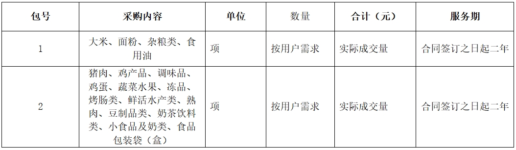 2、主要成交标的的名称、数量、服务期等