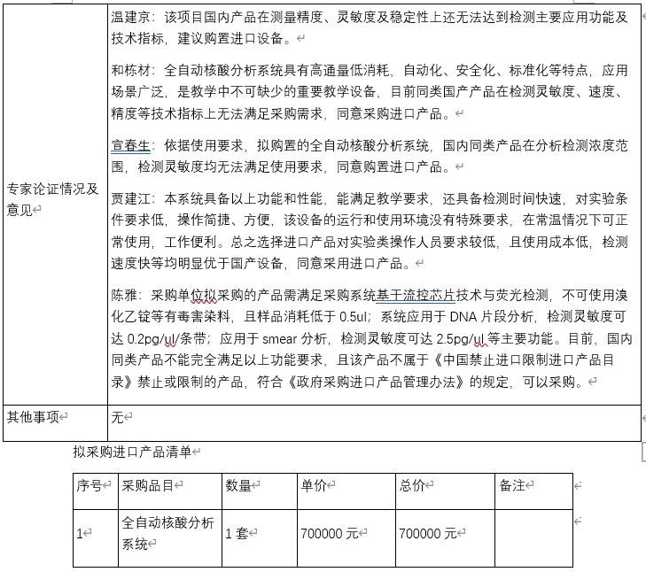 美加墨世界杯官方网站全自动核酸分析系统采购项目拟采购进口产品满足使用需求,现将申请采购进口产品的基本情况、专家论证情况及意见进行公示,公示期为2022年8月3日起至2022年8月9日止(五个工作日)。若对专家组论证意见存在异议,可在公示期内提出,并将相关意见和依据,书面报送采购单位。