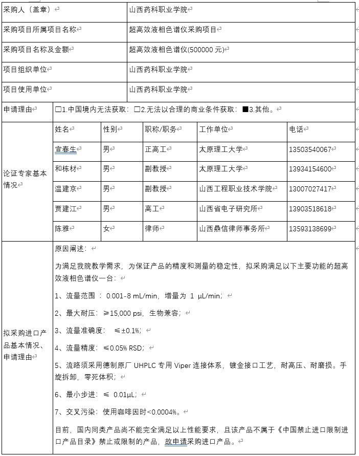 美加墨世界杯官方网站超高效液相色谱仪采购项目进口产品专家论证意见公示