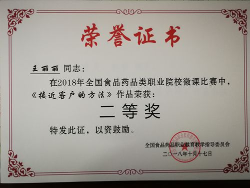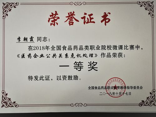 近日,在2018年全国食品药品类职业院校微课比赛中,世界杯官网教师分别取得一等奖1个、二等奖1个、三等奖10个的优异成绩。其中,李朝霞的作品《医药企业公共关系危机处理》获一等奖;王丽丽的作品《接近客户的方法》获二等奖;张府君、郝晶晶、孙靓的作品《冰片中砷盐的检测—古蔡氏法测砷》,樊圣丽的作品《滋阴石斛救命仙草》,景晓琦的作品《焦山楂炮制技术》,杨东方的作品《一字差“千金”的西红花和红花》,张玮玮的作品《金银花的显微世界》,张乾、李朝霞、张丽的作品《针对消费者的医药营业推广》,韩勇的作品《高压蒸汽灭菌锅的结构》,赵小艳的作品《水飞朱砂》,刘文娟、王祎、陈湘玲的作品《高血压的用药指导》,卫军锋的作品《温情式药品零售方法》分获三等奖。