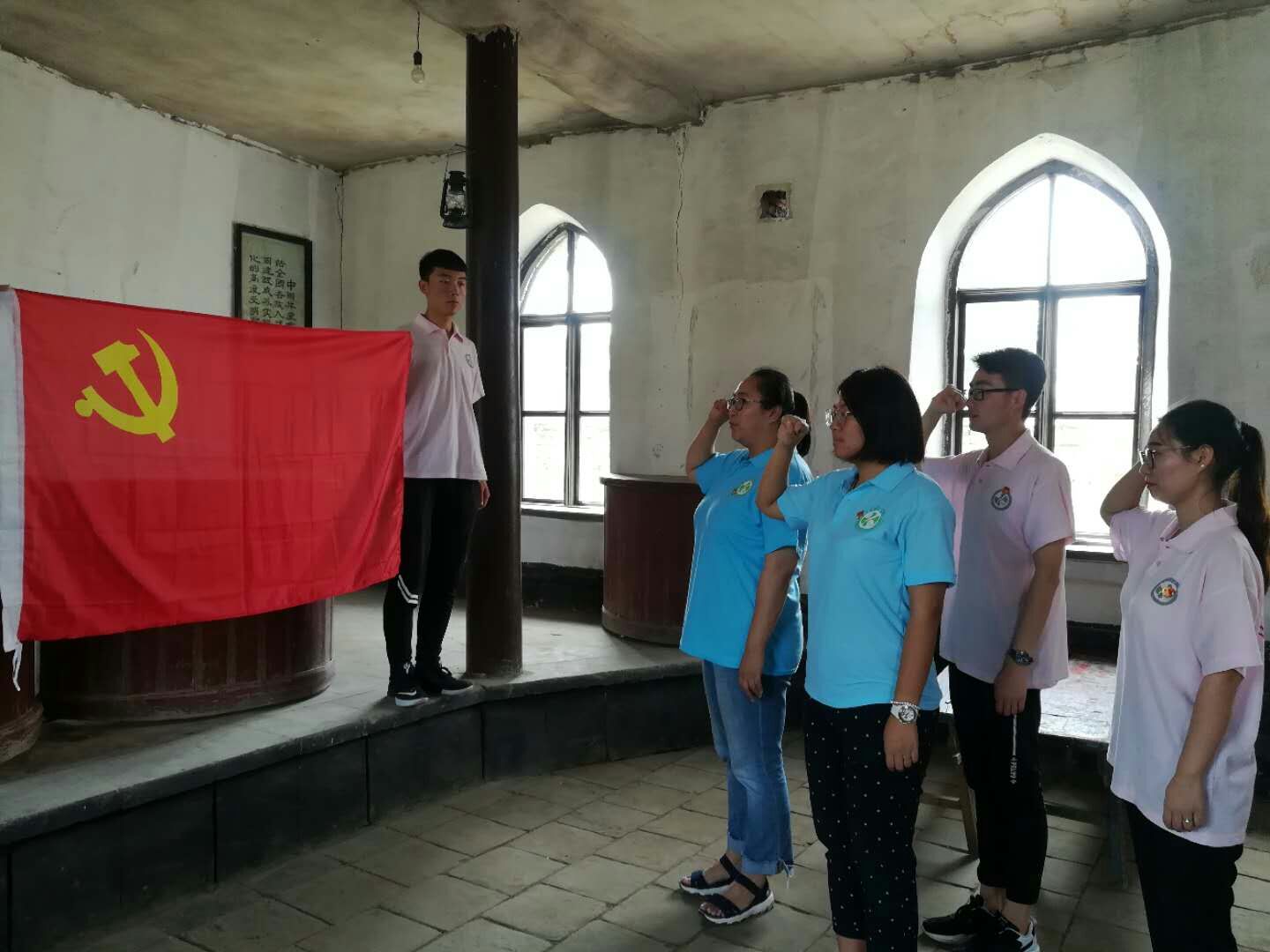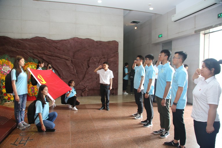 “没有共产党就没有新中国,没有共产党就没有新中国...”你听,嘹亮的歌声从平型关纪念馆传来,激情高亢,振奋精神,饱含大捷的畅快,洋溢崇拜的深情。7月12日,赴晋银公司社会实践团前往平型关纪念馆,开展了“学习红色历史,体验红色历程,传诵红色精神”主题党团日活动。过程中,实践队员们参观学习了平型关战役的历史,并面向团旗庄严宣誓。实践团临时党支部书记李一奇和教师党员张海瑞在光荣的英雄纪念雕像前朗诵爱国诗歌《不朽的军魂》,为学生党员佩戴党徽,并带领大家重温入党誓词。张海瑞同志还为党员实地讲授党课。活动最后,全体队员高唱红歌。