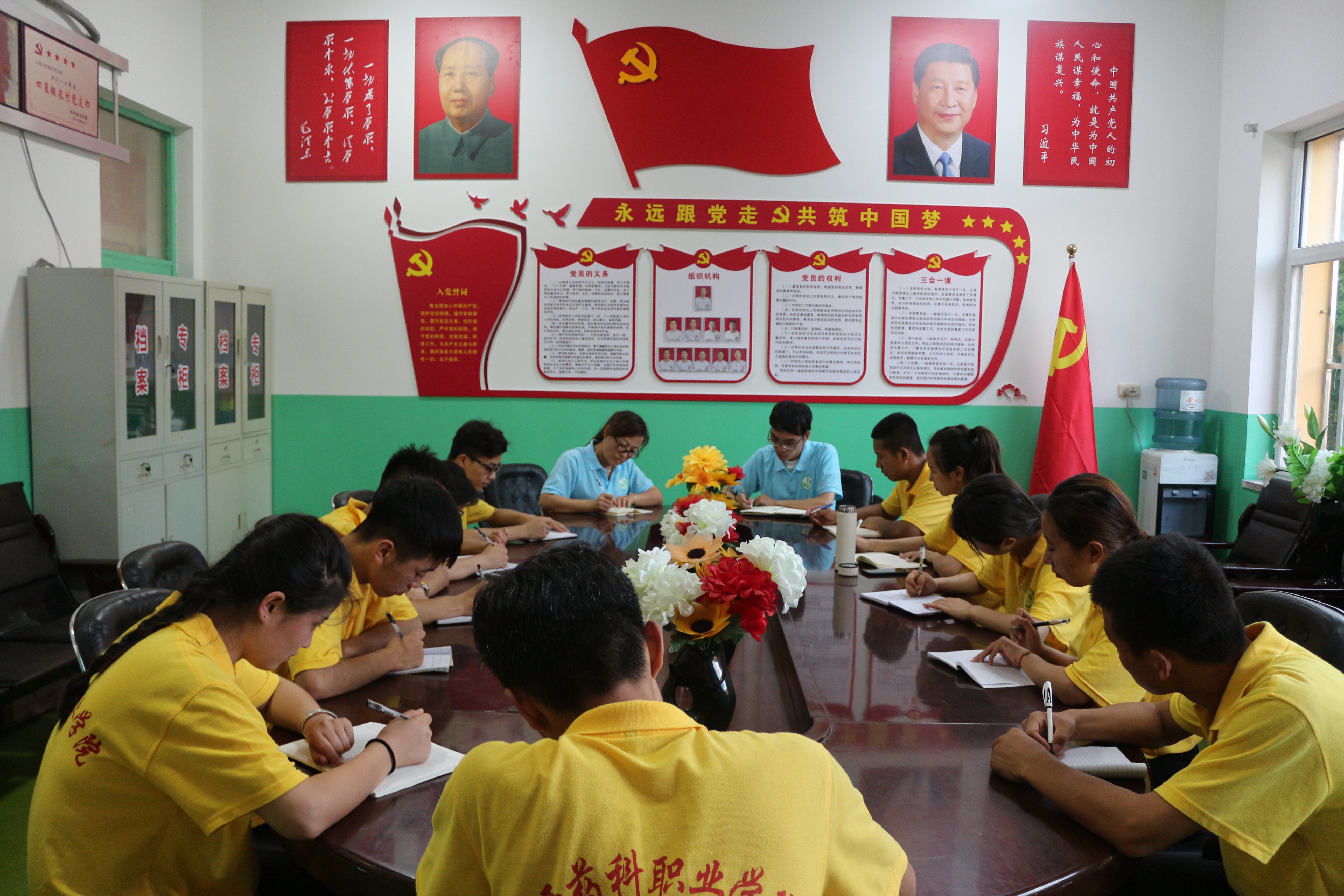 7月13日上午,院党委委员、纪委书记贺聪明,院党委委员、副院长陕荣善一行四人慰问了赴左权社会实践团师生。活动中,大家以太极拳、武术、啦啦操等形式向领导们展现了当代大学生的青春活力。接着,贺书记在左权职业技术中学校书法实训室现场为大家开展了一堂直观生动的书法课。陕副院长嘱咐队员们在日常生活中应放下手机,多培养自己的兴趣爱好,陶冶高尚情操。