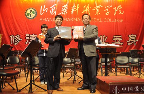图为院党委委员、副院长胡尔雅同志代表学院与中国爱乐乐团党委书记刘军交换纪念品