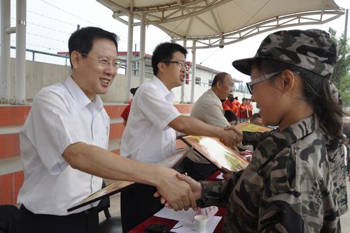 9月15日上午,学院2013级新生军训汇报暨总结表彰大会在运动场隆重举行。学院领导张瑞芳、李华荣、尹士优、王家政、胡尔雅、张震云、邹本贵和军训团副团长武警8652部队张小东少校出席大会。