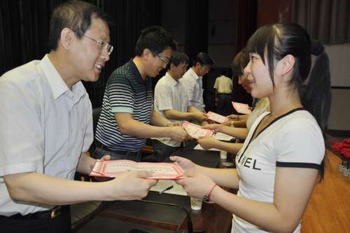 会上,对学院“盛世康源”杯第二届校园文化艺术节获奖集体和个人,2013届省级优秀毕业生,2012—2013学年省、校两级先进班集体、优秀个人以及本学年第一学期优秀学生奖学金获得者等先进集体和优秀个人进行了表彰。与会领导为获奖的集体和个人代表颁发了奖牌和荣誉证书。