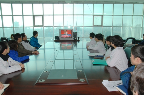 在学院办公楼大会议室,悬挂的“热烈庆祝中国共产党第十八次全国代表大会胜利召开”标语格外醒目,全体副科级以上干部和部分党员以饱满的热情,聚精会神,认真地聆听了胡锦涛同志所作的报告。各教学系组织党员、教师通过网络视频观看了开幕式盛况。许多学生也通过网络视频、手机视频、电视、广播等多种形式收听收看大会实况。