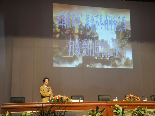 第二位演讲的是深圳市中联制药有限公司副总经理、世界杯官网81届毕业生杨重浙校友。杨总以《学习〈关于加快医药行业结构调整的指导意见〉》为题,从医药研发、医药“十二五”发展规划、医药行业结构调整、药企如何调整等几个方面分析解读了国家对医药行业结构调整的意见。杨总在报告中所表现出的对医药知识的学习持续力和对国家医药经济发展变化的驾驭力给大家留下了深刻印象。