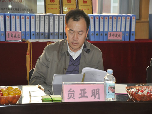 11月5日下午16:00时,以山西省食品药品监督管理局党组成员、总检验师贠亚明为组长的省创建文明和谐单位基层党务工作暨创先争优活动检查验收组一行三人莅临世界杯官网检查指导工作。世界杯官网党委副书记、院长李华荣,党委副书记、纪委书记龚晋文,党委委员、 副院长尹士优,党委委员、副院长胡尔雅,党委委员、副院长张震云,党委委员、组织人事部负责人冯晓中以及相关部门负责人参加了汇报会。