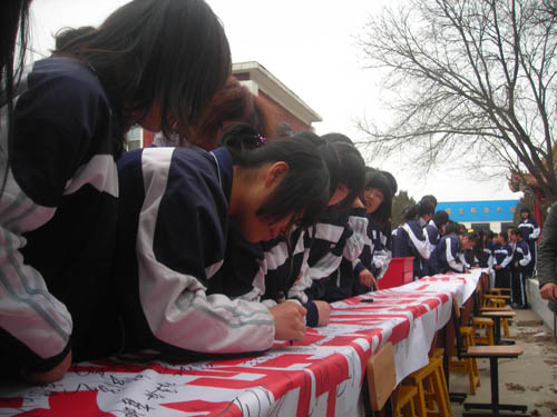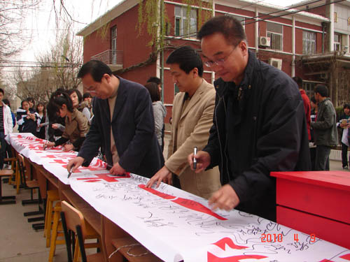 本次活动得到了全体师生员工的积极响应,在活动现场,伴随着《爱的奉献》的深情呼唤,同学们纷纷伸出援助之手,用自己的善举为灾区人民献上一份爱心,用爱心去换来股股清泉,以解灾区同胞之渴。院党委副书记、纪委书记龚晋文,党委委员、党办主任、组织部长冯晓中也来到活动现场,并在宣传条幅上庄重签名。