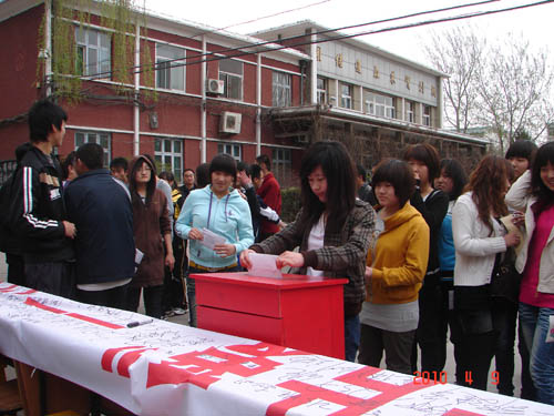 院团委书记彭志强、副书记苏珍枝和各系(部)团总支书记自始至终组织参加捐款签名活动。