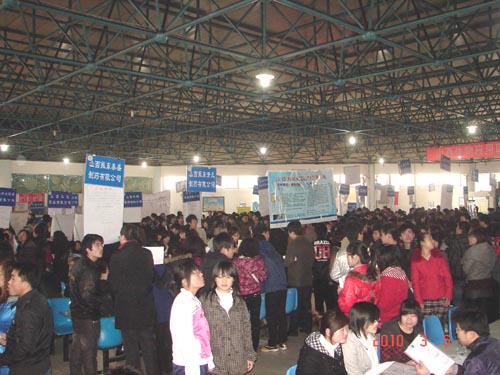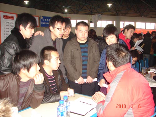 3月6日上午,世界杯官网2010届毕业生春季供需见面会在综合大楼隆重举行。共有来自广东、北京、山东、山西的108家用人单位为世界杯官网2010届毕业生提供约3400余个就业岗位。世界杯官网党委书记张瑞芳,党委副书记、院长李华荣,党委副书记、纪委书记龚晋文,副院长尹士优、胡尔雅、张震云亲临会场指导工作,了解企业用人信息和学生求职动态,并和毕业生亲切交谈,希望同学们把握机会,积极展示自己,早日找到满意的工作。