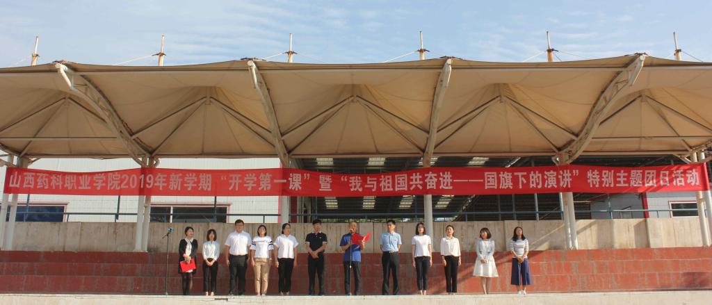 院党委副书记邹本贵同志讲授“开学第一课”暨“我与祖国共奋进——国旗下的演讲”主题微团课。邹副书记从为中华人民共和国成立抛头颅洒热血的英雄事迹讲到近期风云变幻的国内外局势,鼓励同学们作为生活在和平年代的新青年,要传承爱国主义精神,将个人前途与国家命运同频共振,在决胜小康的征程里、在振兴中医药事业的伟大道路上贡献药院人的青春和力量。他还对全体青年团员提出三点希望:一要忠于祖国、忠于人民,在厚植爱国情怀中提升新境界;二要胸怀全局、志存高远,在坚定理想信念中承担新使命;三要博学慎思,明辨笃行,在学习实践锻炼中展现新作为,在推动党和国家事业发展的伟大进程中实现人生价值。