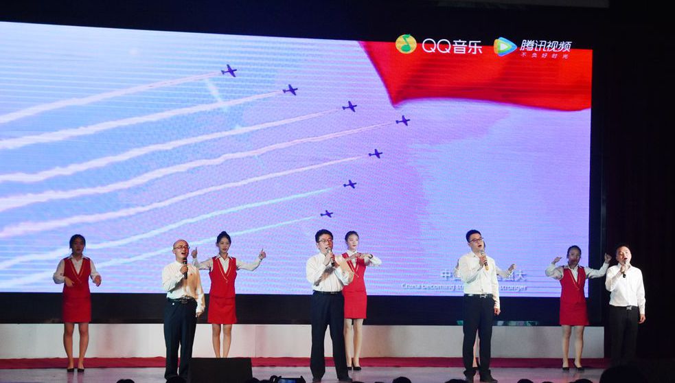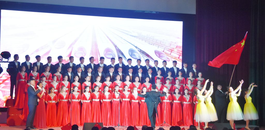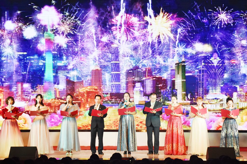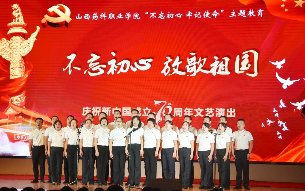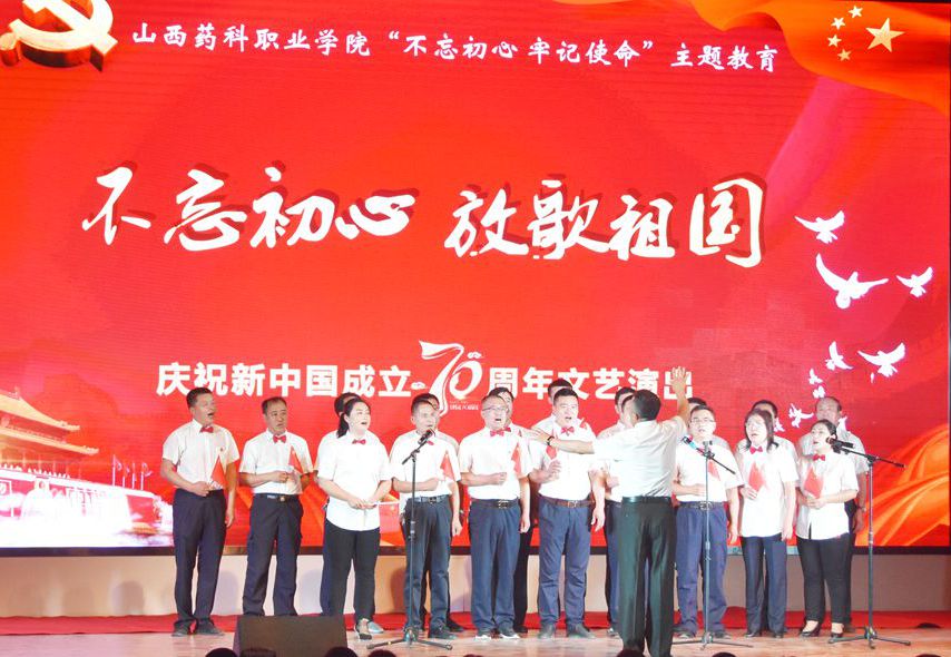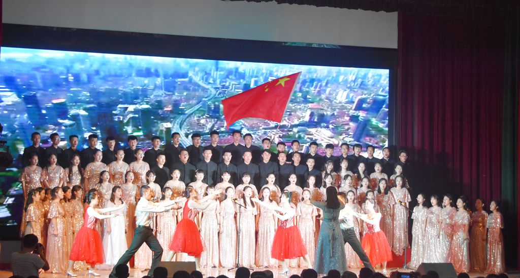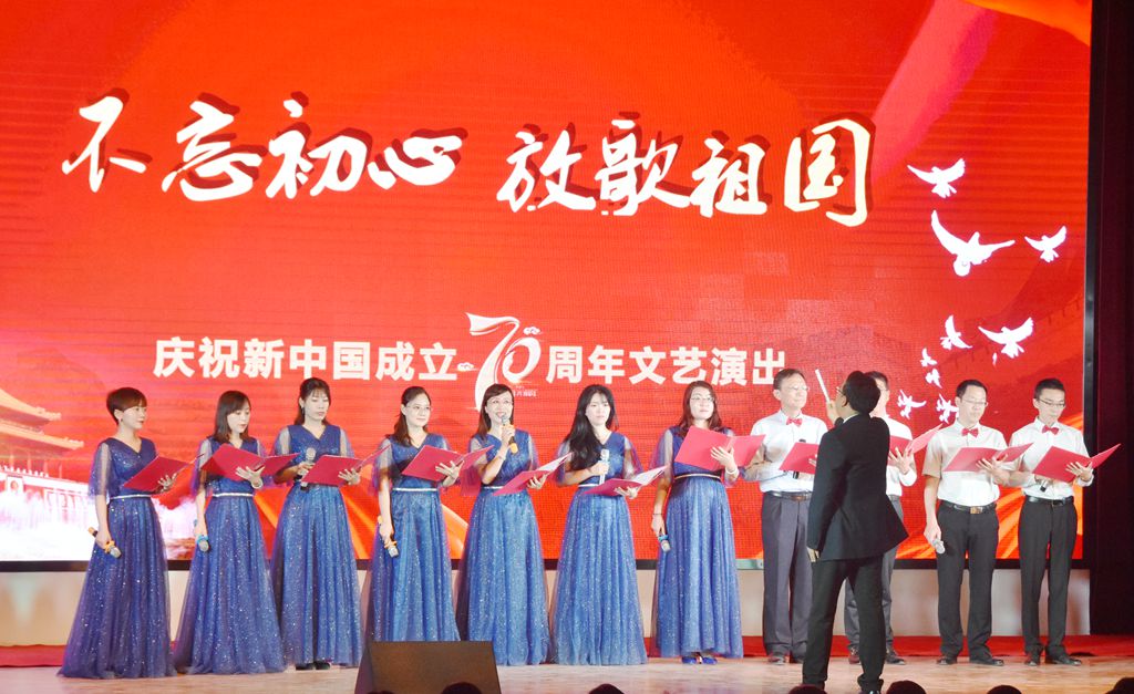 伴随着主持人热情洋溢的开场,本次演出在王晶老师的独唱《和谐中国》中拉开了帷幕,优美动听的歌声吸引了在场的每一位观众,唱出了一幅太平盛世的和美景象。诗朗诵《我们走在大路上》、《我和我的祖国》,用朴素的辞藻和深情的朗诵表达了对伟大祖国的真挚情感和美好祝福。舞蹈表演《美丽中国走起来》、《中华长春》,节奏欢快、舞步轻盈,青春洋溢、活力四射,将整场文艺演出推向了一个又一个高潮。歌曲《不忘初心》、《撸起袖子加油干》,气势豪迈,彰显了药院人积极向上、拼搏奋进的工作精神。《在灿烂阳光下》、《五星红旗》、《今天是你的生日》、《我爱你,中国》等合唱曲目,向伟大祖国真情告白,表达出他们的殷殷家国情怀、拳拳赤子之心。最后,全场高声合唱《歌唱祖国》,台下观众挥舞着手中红旗,全场沉浸在一片红色的海洋中。