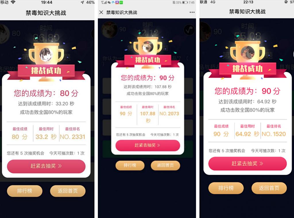 鉴于大一已放假回家、大二处在期末考试阶段,学生工作部和院团委组织部分学生,利用空余时间参加“学知识、防毒害”禁毒知识竞答活动,加深学生对毒品危害的认知,提高学生毒品防范能力。据统计,共有3347名学生参加了此次竞赛,参与率达到了80%以上。