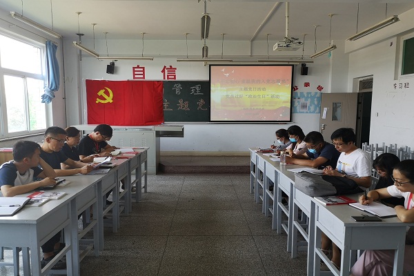 思政部党支部于6月23日下午举办庆祝建党99周年的主题党日活动。本次主题党日活动以“重温入党志愿书”为主题。在此次活动中,全体党员学习了中央党校教授林雅芳同志的主题党课视频《中国共产党的文化情怀》。