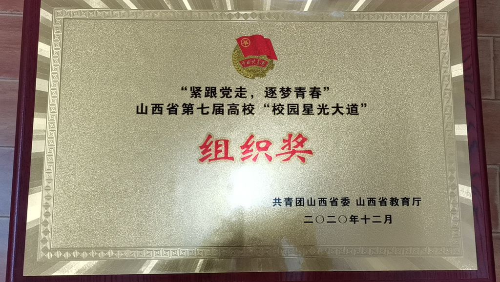 近日,世界杯官网参加了由共青团省委、山西省教育厅主办,山西工商学院承办的 “紧跟党走逐梦青春”山西省第七届高校校园星光大道活动,活动比赛通过线上线下相结合的方式,经过激烈的角逐、复赛、半决赛、决赛已圆满结束,世界杯官网获得山西省第七届高校校园星光大道组织奖。