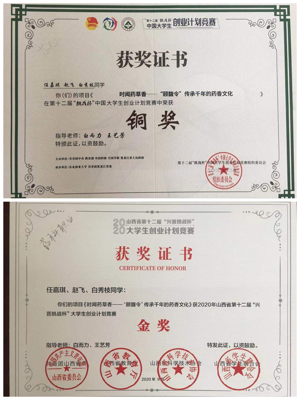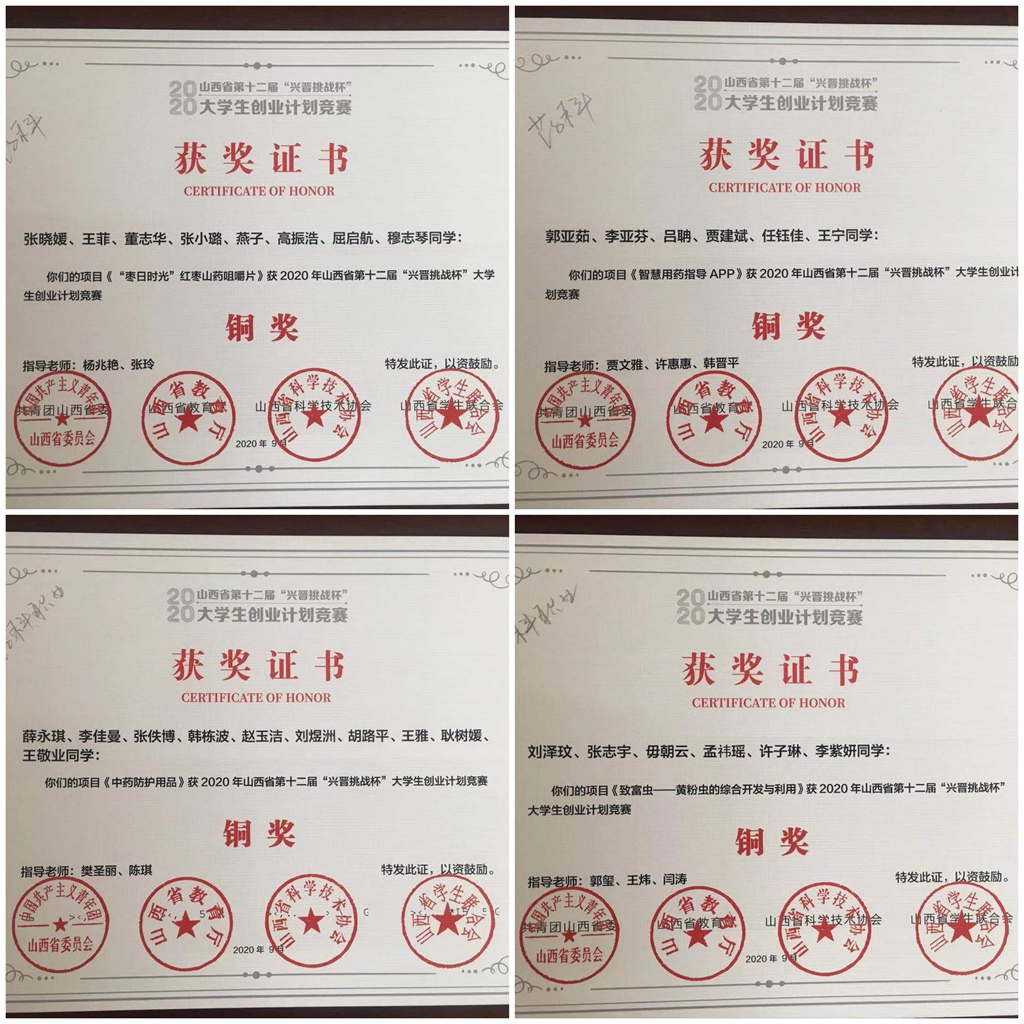 在第十二届“挑战杯”中国大学生创业大赛中,世界杯官网报送15件作品参加省赛,荣获1个金奖,3个银奖,4个铜奖,其中由制药工程系白而力、王艺芳老师指导的参赛作品《时闻药草香-“颐馥令”传承千年的药香文化》首次入围国赛,勇夺铜奖!该项目的获奖创造了世界杯官网参加“挑战杯”大赛以来历史最佳成绩,实现了“挑战杯”国奖零的突破。