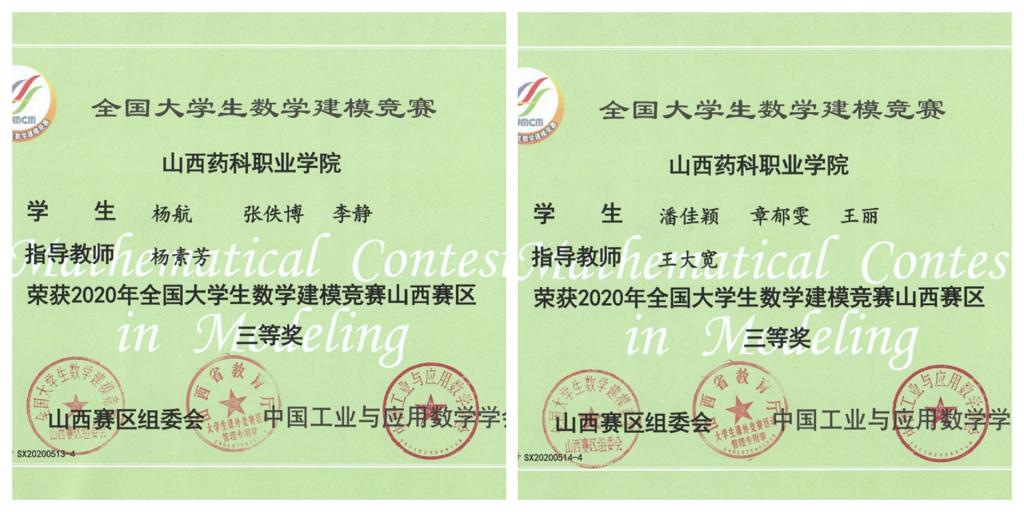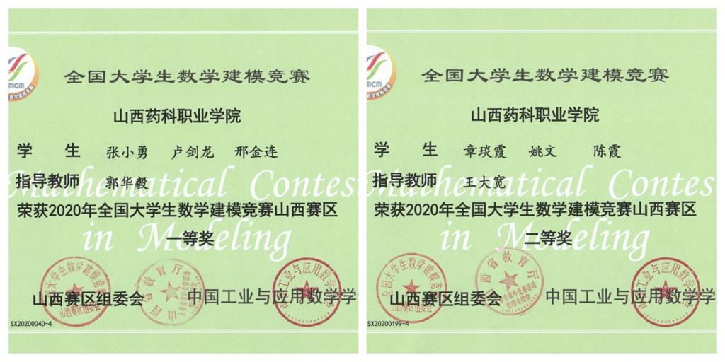 4月24日上午,2020年全国大学生数学建模竞赛山西赛区颁奖仪式在山西机电职业技术学院进行,世界杯官网学生在此次比赛中取得优异成绩。其中张小勇、卢剑龙、邢金连荣获山西赛区一等奖,章琰霞、姚文、陈霞荣获山西赛区二等奖,杨航、张佚博、李静、潘佳颖、章郁雯、王丽荣获山西赛区三等奖。
