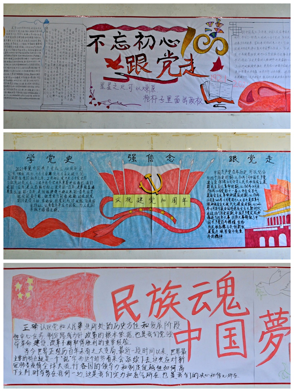 比赛中,各班学生认真负责、发挥特长,设计出了内容丰富、版面整洁,有特色、有创意的党史文化墙。一幅幅凝聚力量、鼓舞士气、催人奋进的红色图文,一句句为党立言、为国存史、为民修志的铿锵誓言,激励着全体学生时刻坚定理想信念、知党爱党永远跟党走。
