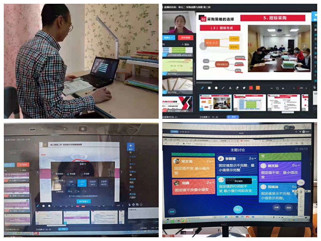 为实现“停课不停教、停课不停学”,自开学以来,学院通过多种渠道、多种方式积极开展线上教学活动,确保“教学内容不缩水、教学标准不降低”。任课教师依托学习通、腾讯会议等教学平台,采取“直播+互动”的模式,利用测试、抢答、竞答、连麦等功能,广泛开展在线教学活动;同时,充分利用网上教学资源,拓展深化课程内容,保障了线上教学工作的高质量运行。教务处组织院系督导和教学管理人员通过在线督导系统实施听课督导和巡课工作, 运用数据信息和点对点听课,检查在线课程的效果,及时解决线上教学中遇到的困难和问题,确保线上教学有效有序。