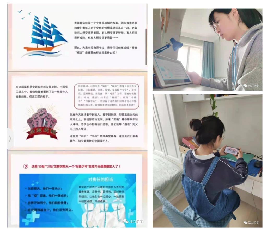思政部充分发挥课堂主渠道作用,围绕抗疫主题,组织开展集体备课备讲,进一步丰富了教学设计,确保上好抗疫思政课。各系充分利用主题班会、主题团课等形式,在线上开展了内容丰富的抗疫学习教育活动。通过学习,学生们对新冠肺炎疫情在我国的蔓延有了更加全面的认识,对我国波澜壮阔的抗疫历程有了更加深刻的感悟,进一步坚定了战胜疫情的信心和决心,凝聚了青春共识和责任担当。大家表示,会坚决响应号召,严格遵守校园疫情防控各项规定,提高防护意识,成为疫情防控的一道严密防线。同时,要积极宣扬抗疫精神,保持昂扬向上的精神状态,书写最美的青春篇章。
