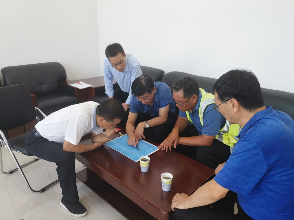院领导与龙城大街东延施工方对接研究学院北门建设位置