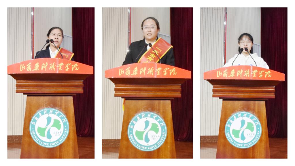 “四有”好老师代表蔡翠芳、“三全育人”先进教育工作者代表方育婧分别发言,她们用自己的工作实践、亲身经历和切身感受,从不同角度展现了山西药科人牢记铸魂育人使命、落实立德树人任务的精神风貌。中药系刘成梅同学代表全体学生充分表达了对老师们的感激之情。