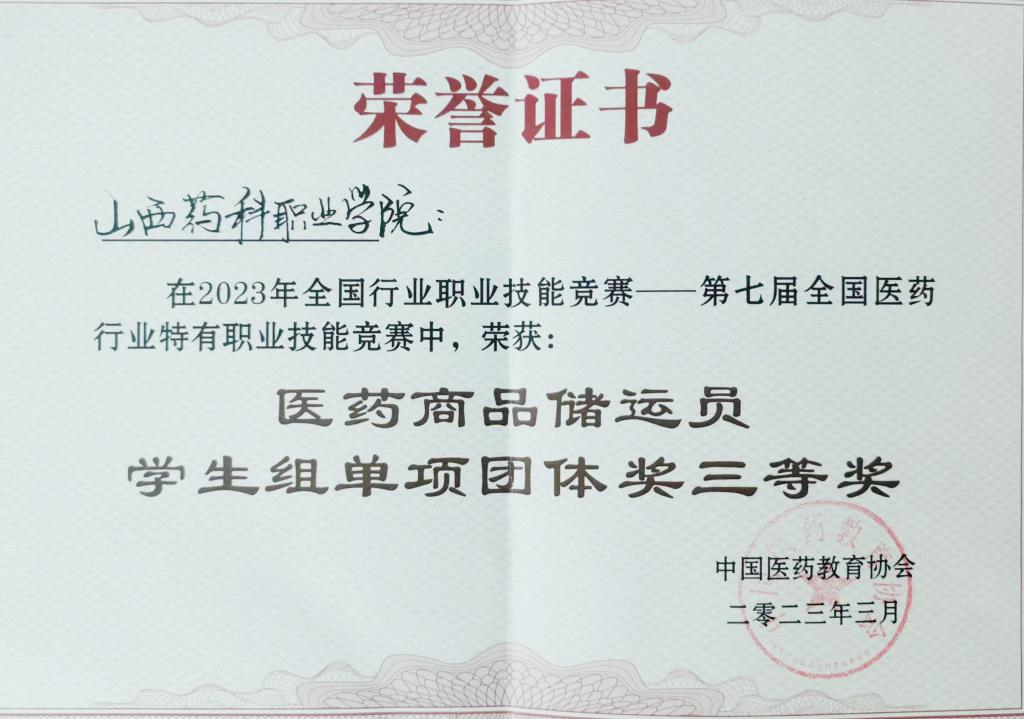 近日,2023年全国行业职业技能竞赛第七届全国医药行业特有职业竞赛——医药商品储运员赛项在山东医药技师学院落幕。世界杯官网学生郝剀利、陈彬彬荣获“医药商品储运员”个人三等奖和团体三等奖。