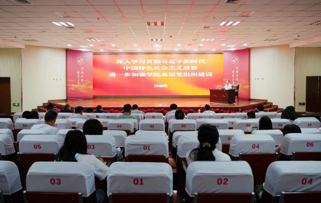 为全面加强学院基层党组织建设,充分发挥学院基层党组织的政治功能和组织功能,按照学院主题教育统一部署安排,6月9日下午,学院党委副书记沈宝荣以“深入学习贯彻习近平新时代中国特色社会主义思想,进一步加强学院基层党组织建设”为题在学院综合楼一层报告厅讲授了专题党课。学院有关部门负责同志,各党总支、直属党支部书记和制药工程系全体党员参加此次专题党课。