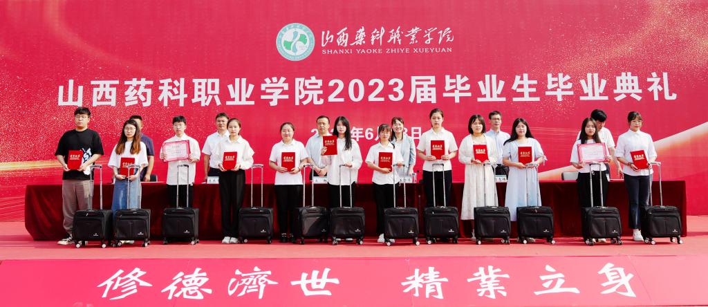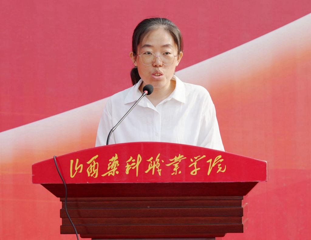 北京同仁堂山西连锁药店有限责任公司经理张静作为校友代表致辞,她回顾了在母校求学的经历,分享了求学求职中的心得体会和成功经验,鼓励即将毕业的学弟学妹,传承“百草”精神,珍惜韶华、矢志奋斗,努力成长为食品药品医疗器械行业的高素质技术技能人才。