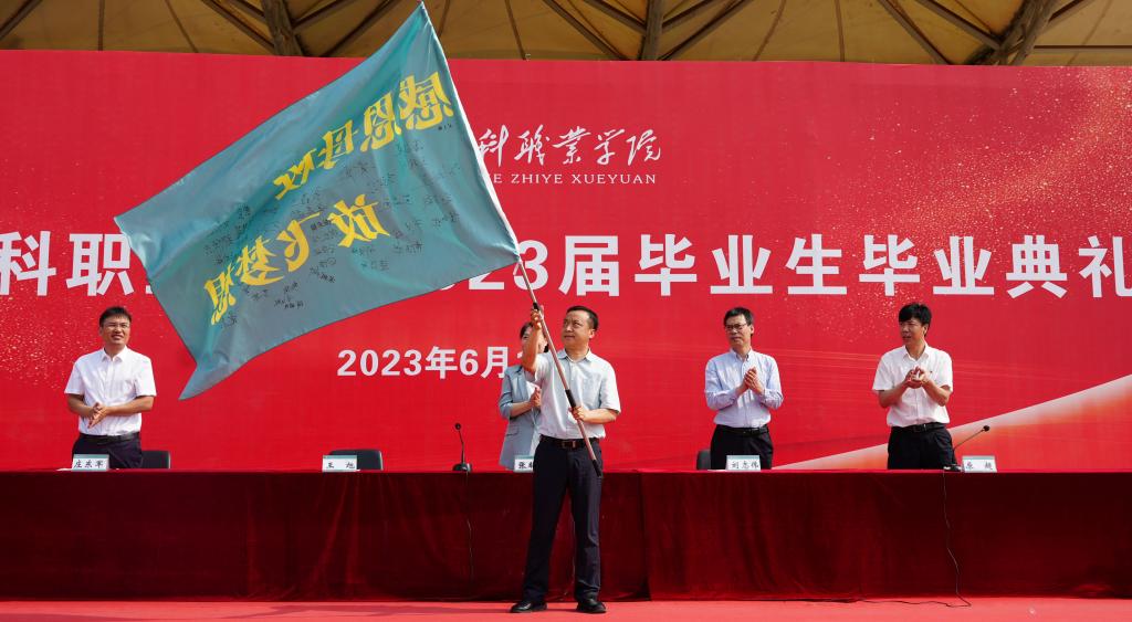 最后,党委书记王旭代表学院接受毕业生敬献的纪念旗。