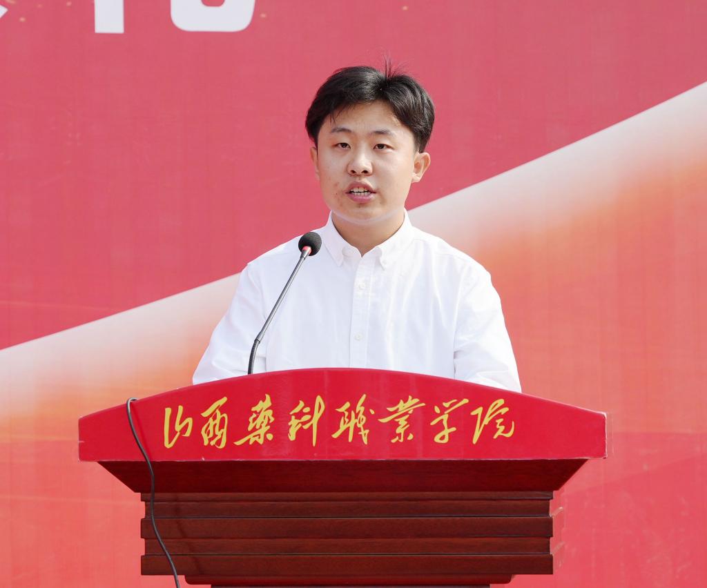 2020级药学高本贯通班郑顺杰代表毕业生发言。他首先代表全体毕业生表达了对母校的感谢之情,并表示将延续药科人奋斗的底色,在今后的求学中,牢记“修德济世,精业立身”的校训,用青春热血书写无悔人生!