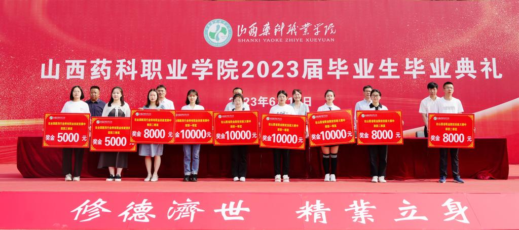 典礼现场,学院领导为毕业生代表颁发毕业证书,为优秀毕业生和获得国家级、省级各类技能比赛优异成绩的毕业生颁奖。