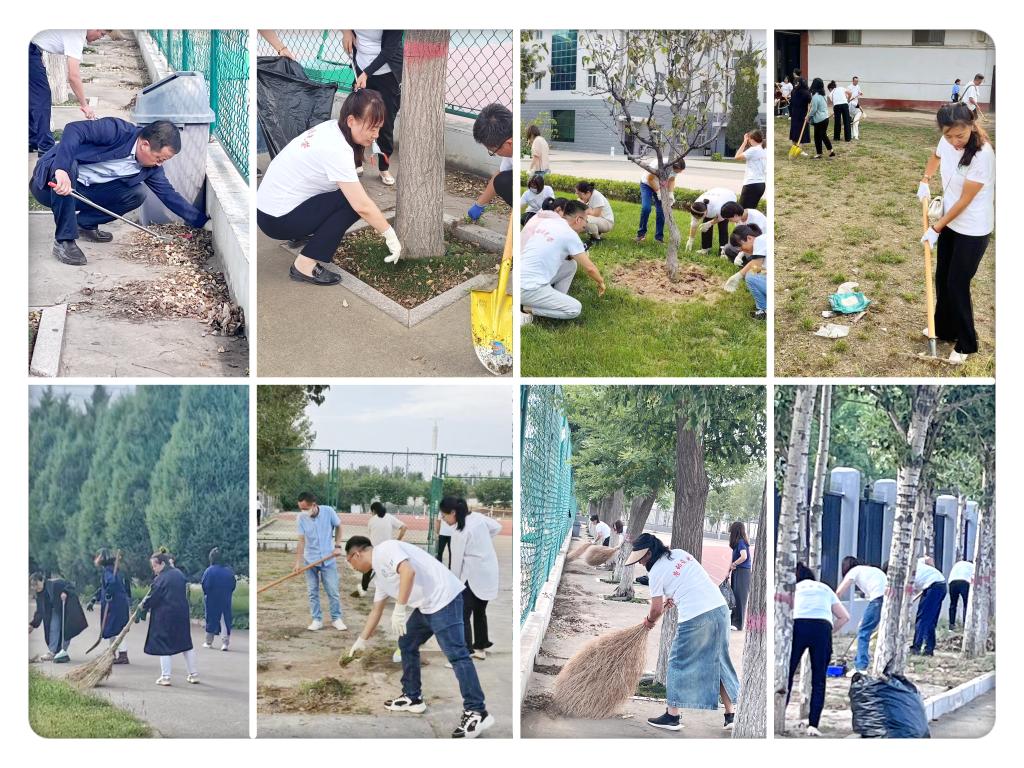 新学期,新面貌,新气象。为深入贯彻学院“文化强校提升工程”要求,全面提高文明校园建设水平,充分发挥广大教职工在“三全育人”过程中的劳动示范引领作用,院工会于9月4日、13日分别组织全体教职工对办公环境和校园环境进行了卫生大清扫。