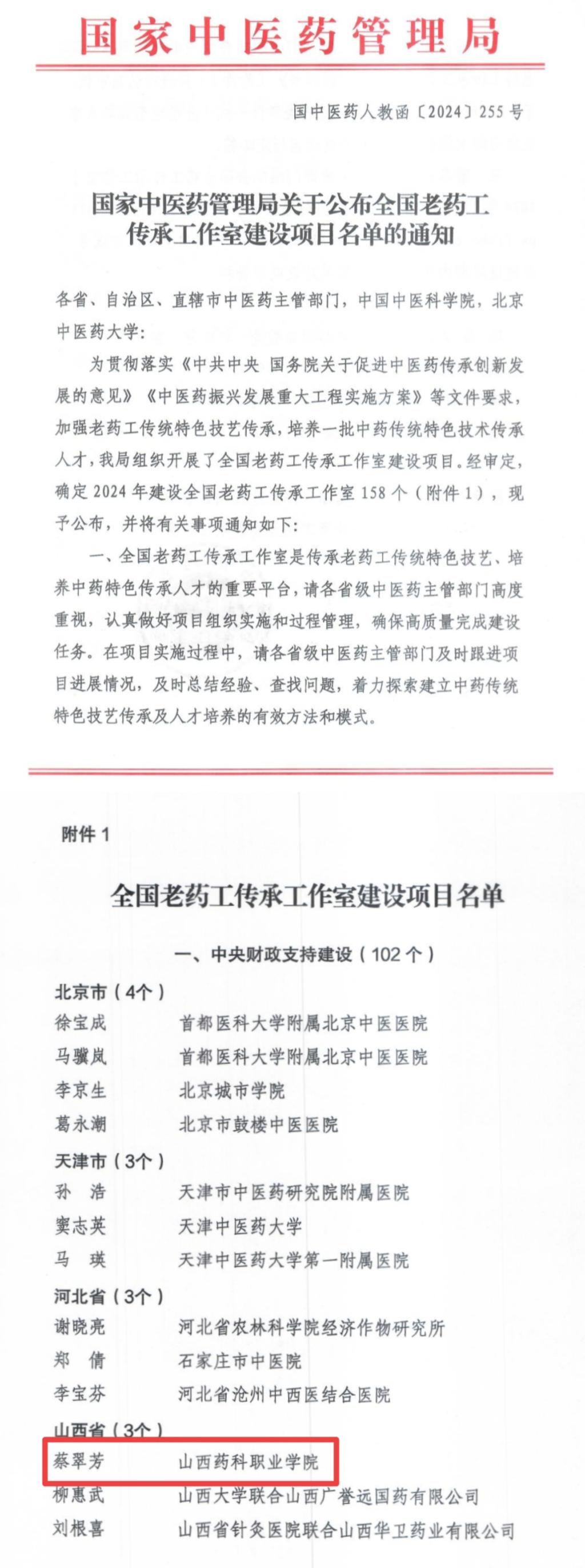 日前,国家中医药管理局公布2024年全国老药工传承工作室建设项目名单,来自全国各省市区共计158个建设项目获批,其中山西省获批3项,世界杯官网“蔡翠芳老药工传承工作室”成功入选。