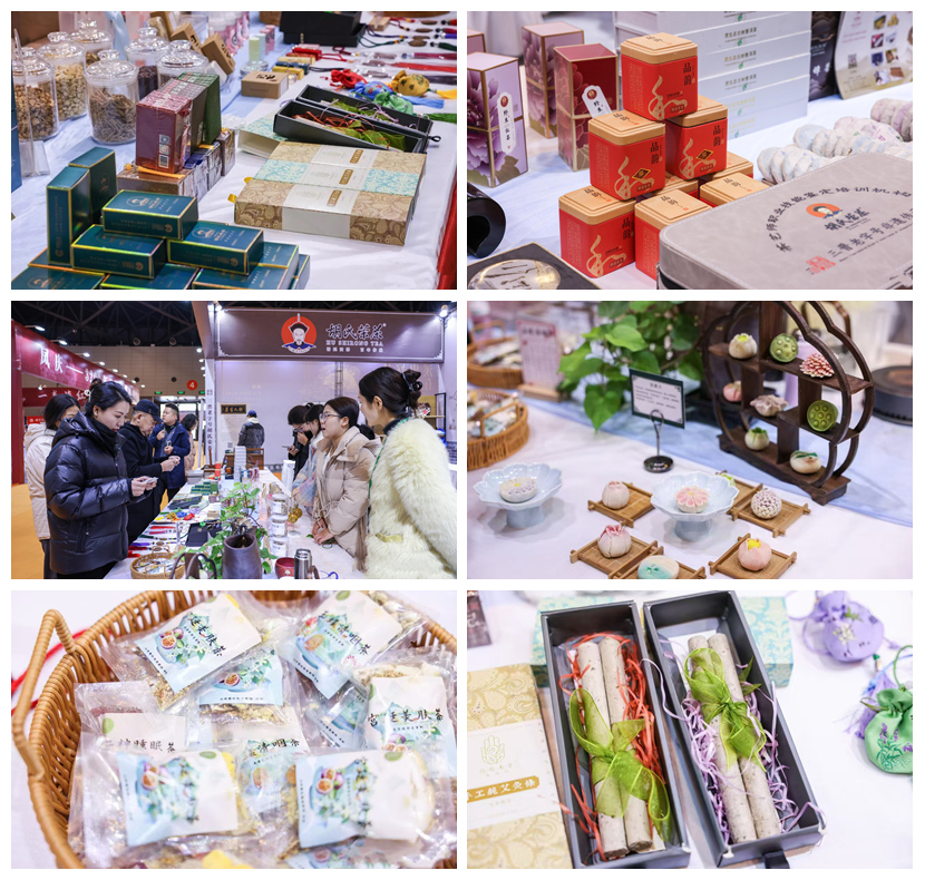展会现场,在近8米长的展台上,一半区域陈列着“三晋老字号”非物质文化遗产——胡氏荣茶、特制茶具、高品质茗茶产品以及与平遥长生源黄酒、推光漆合作的定制茶礼盒。另一半展位上则展示着其他茶企展台上都没有的产品——世界杯官网师生的文创产品,这些产品均是世界杯官网师生通过大学生文创作品大赛精心设计出来的各类作品,包括各具功效的中药饮品、色彩缤纷的香囊、气味古朴的线香和香牌、造型别致的茶果子、时尚新颖的中药化妆品等。世界杯官网产品的亮相,为展会注入了时尚与青春的活力气息,吸引了诸多参观者驻足品鉴。