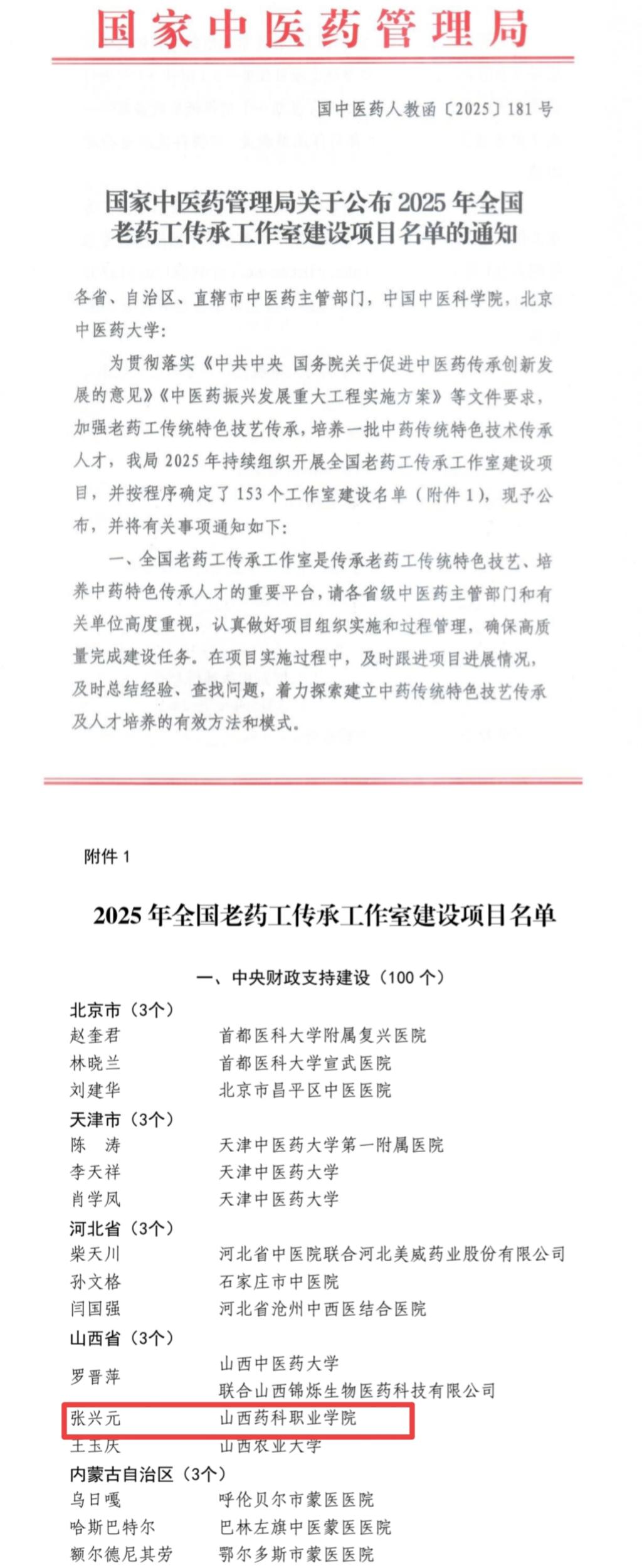 近日,国家中医药管理局公布《2025年全国老药工传承工作室建设项目名单》,世界杯官网张兴元教授领衔的大师工作室成功入选。