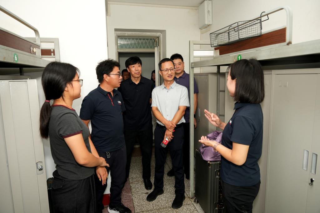 关伟一行先后走访新生报到区、学生公寓、食堂等重点场所,详细了解学生社区报到流程、住宿安排、现场组织、服务保障等环节的落实情况,并对学生公寓的住宿环境进行了细致检查。针对检查中发现的问题,现场提出整改意见与具体要求。