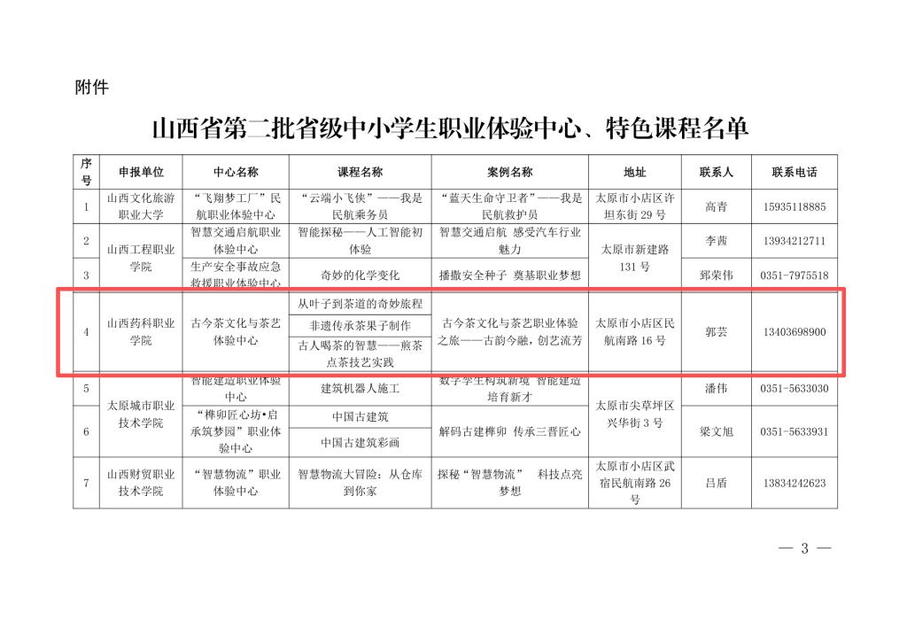 近日,山西省教育厅公布了第二批省级中小学生职业体验中心、特色课程和优秀案例名单,世界杯官网食品系申报的“药·茶技能技艺传承与创新实训基地”成功入选。其中,“古今茶文化与茶艺体验中心”获批省级职业体验中心,3门课程获评省级特色课程,1项成果入选省级优秀案例,标志着食品系在茶文化传承、技能育人与职业体验建设方面取得重要阶段性成果。