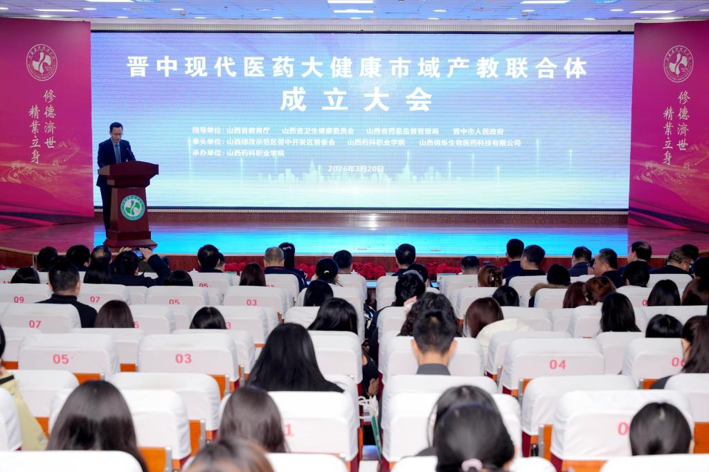 3月20日,晋中现代医药大健康市域产教联合体(以下简称联合体)成立大会在美加墨世界杯官方网站隆重召开。山西省教育厅职业教育与成人教育处处长韩瑞勇,山西省药品监督管理局总检验师赵思俊,山西省卫生健康委员会中医药科技与产业处处长刘浚,晋中市人民政府副秘书长邵刚,晋中开发区党工委副书记贾尚明,美加墨世界杯官方网站党委书记张轩萍,山西锦烁生物医药科技有限公司董事长武瑞杰等领导出席大会。会议由美加墨世界杯官方网站院长关伟主持。联合体成员单位代表及学院师生代表200余人参加大会。