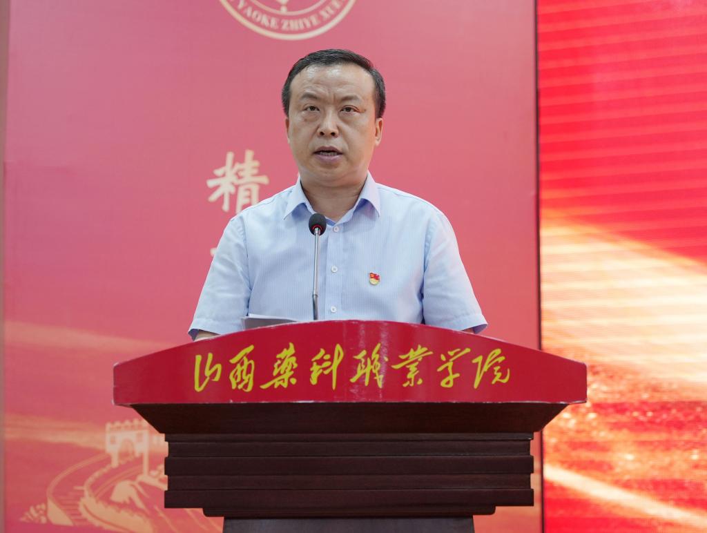 就进一步加强和改进学院党的建设,推动学院各项事业高质量发展,王旭提出三点意见:一是要强化政治引领、以上率下,进一步发挥党委政治核心作用。要带头强化理论武装,坚持不懈用习近平新时代中国特色社会主义思想凝心铸魂;要带头强化真抓实干,凝心聚力推动学院发展再上新台阶;要带头强化全面从严,持续深入抓好清廉学校示范单位创建工作。二是要强化政治功能、组织动员,进一步发挥基层党组织战斗堡垒作用。要在示范引领带动下加强组织建设,持续夯实基层基础;要在党建业务互融中明确工作思路,不断增强基层活力;要在规范党员管理中强化规矩意识,推动基层全面过硬。三是强化政治标准、实干担当,进一步发挥党员干部先锋模范作用。要立足履行党员义务,扛牢先锋模范根本要求;要立足履行教师职责,扛牢立德树人根本任务;要立足山西药科大家庭,扛牢主人翁根本责任,凝聚起山西药科的浩然正气,争当高质量发展的践行者。