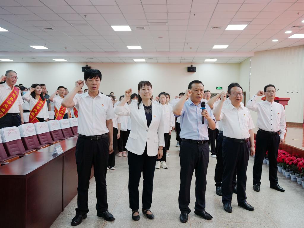 上午9时,大会在雄壮的国歌声中拉开帷幕。院党委委员、纪委书记庄东军同志宣读了《关于吸收廉冬等96名同志为中共预备党员的决定》。