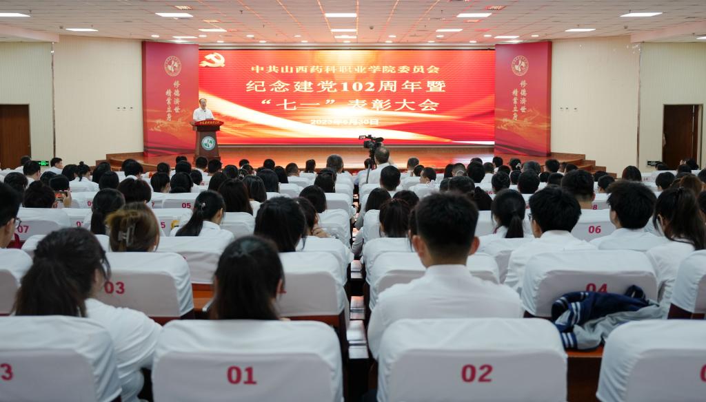 王旭以《让党旗在山西药科高质量发展新征程上高高飘扬》为题作了总结讲话。他代表学院全体党员同志向我们伟大光荣的中国共产党致以节日的祝福,向受表彰的同志表示热烈祝贺,向新党员表示热烈欢迎,向奋战在教学、管理、服务等各个岗位上的广大党员职工致以节日的问候。