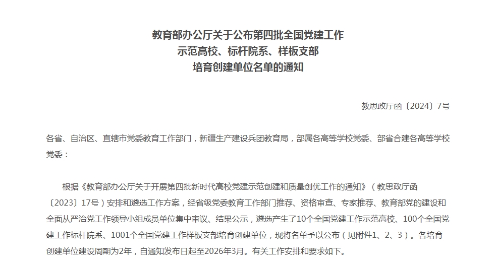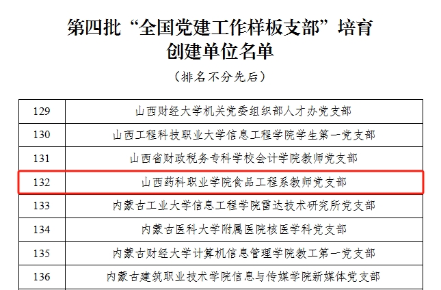 近日,教育部公布了第四批全国党建工作示范高校、标杆院系、样板支部培育创建单位名单,世界杯官网食品系党总支教师党支部喜获“全国党建工作样板支部”培育创建单位。