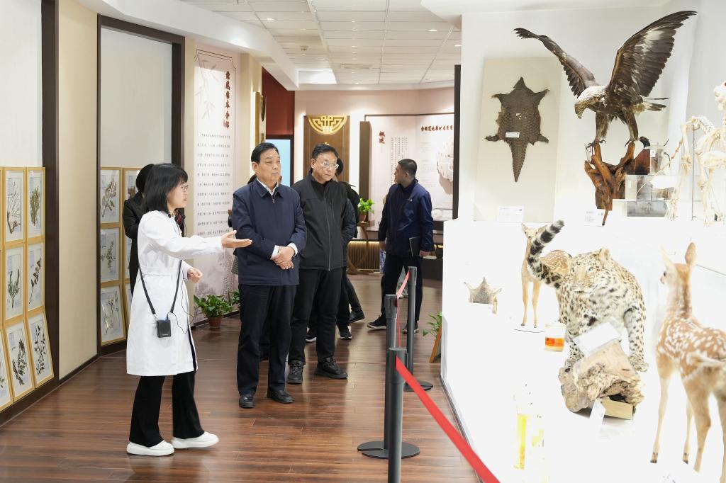 会前,王五一一行在学院相关同志的陪同下参观了中药系教学楼中药文化展、中药调剂技能传承基地和中药标本厅等场所。