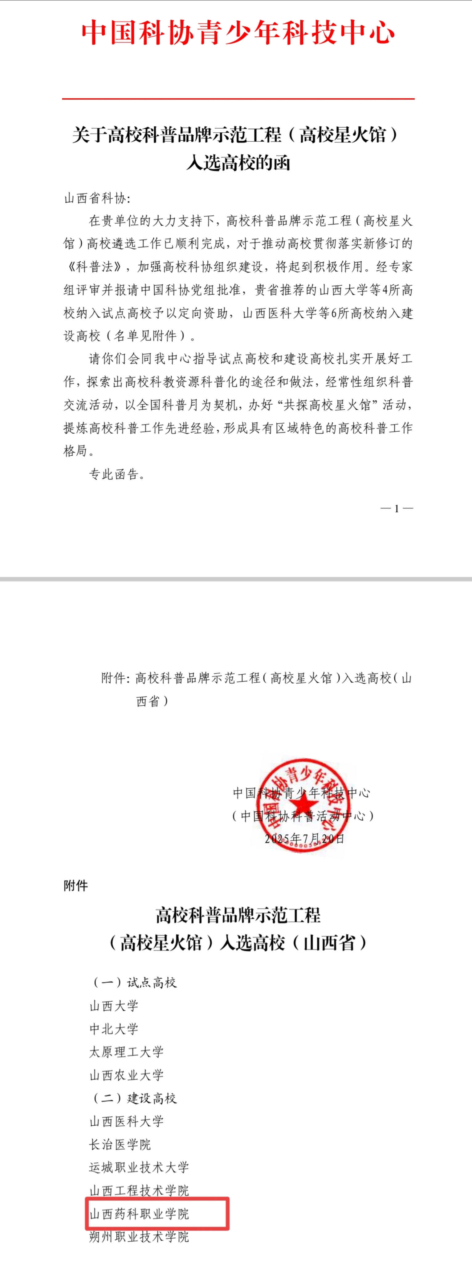 近日,中国科协青少年科技中心正式公布2025年度“高校科普品牌示范工程(高校星火馆)”入选名单,世界杯官网成功入选建设高校行列。
