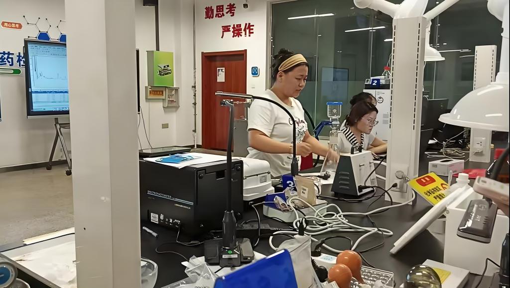 “你们只管专心训练,其他事情交给学校。”这句来自院领导的承诺,成为药学系参赛团队(指导教师甄会贤、台晶杰,学生刘彬倩、李佳灿、张心悦、任润子)最坚实的后盾。学院不仅设立专项基金、统一采购实验耗材,还安排服务保障部每日供应热乎餐食、提供防暑防蚊物资,全力营造安心备赛的环境。